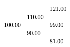 \begin{eqnarray} \left.\begin{array}{c} u = \exp\left(\sqrt{(\mu \Delta t)^2 + \sigma^2 \Delta t}\right),\\ d = \exp\left(-\sqrt{(\mu \Delta t)^2 + \sigma^2 \Delta t}\right),\\ p = \frac{1}{2} + \frac{1/2}{\sqrt{\sigma^2/(\mu^2 \Delta t) +1 }}. \end{array}\right\} \end{eqnarray}(5.34)Assuming that \(\Delta t\) is very small we can adopt an approximation to the above three expressions, where the higher order term of \(\Delta t\) is neglected and the smallest order term of each expression is retained. This approximation gives the simplified set of parameters